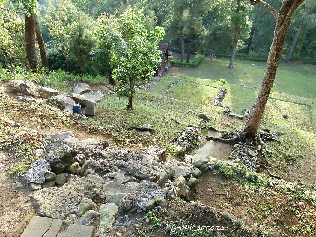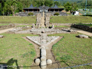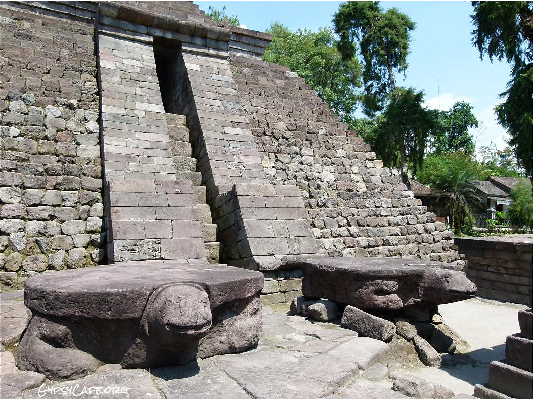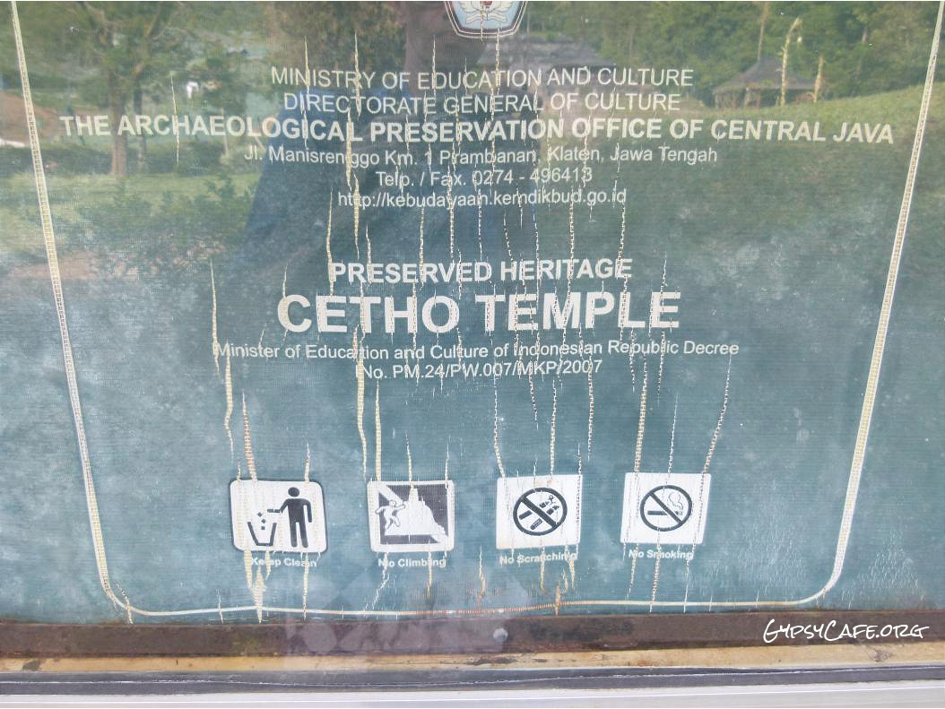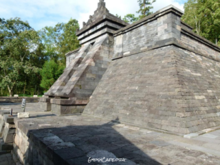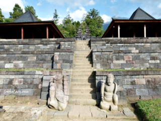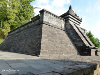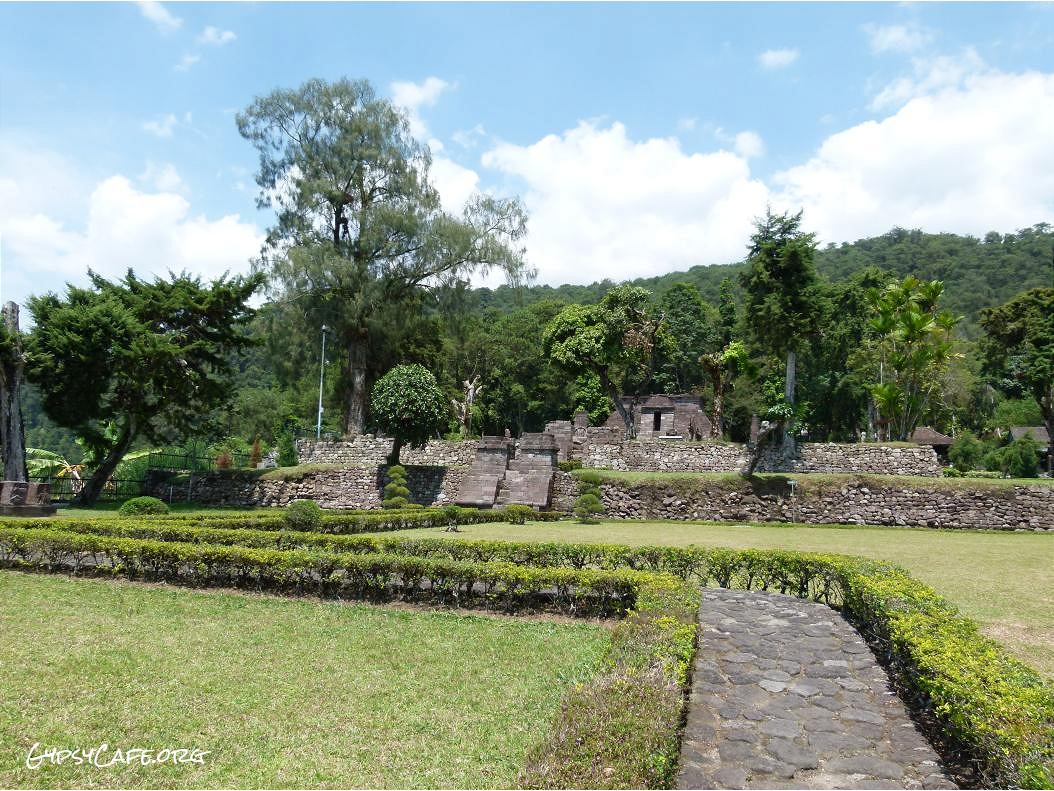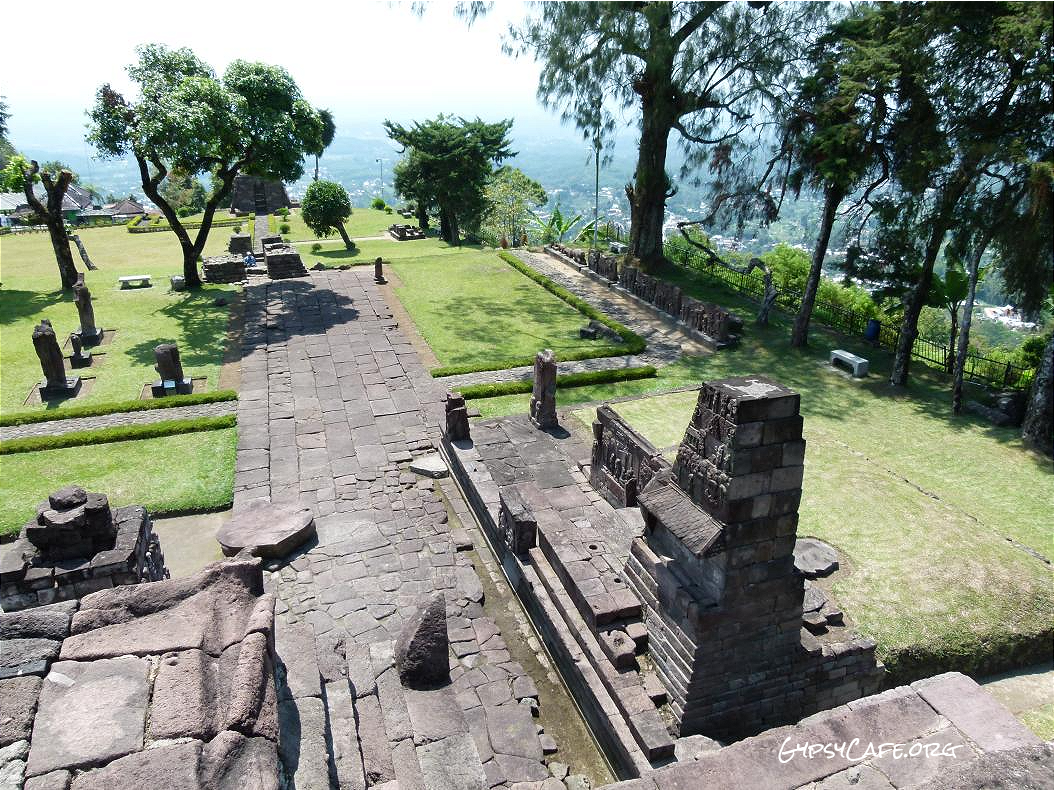 The site is on the western slopes of Mount Lawu in Central Java, situated at about 910 m above sea level (3,000 f). The monument was built around the 15th Century (est era: 1429 – 1446). Facing West, it consists of three levels which symbolize some of the levels for attaining perfection in life. Some reliefs explain the existence of three worlds (levels of life); the underworld, the middle world and the above world. The three worlds depict the levels humans must pass to go to Nirvana.